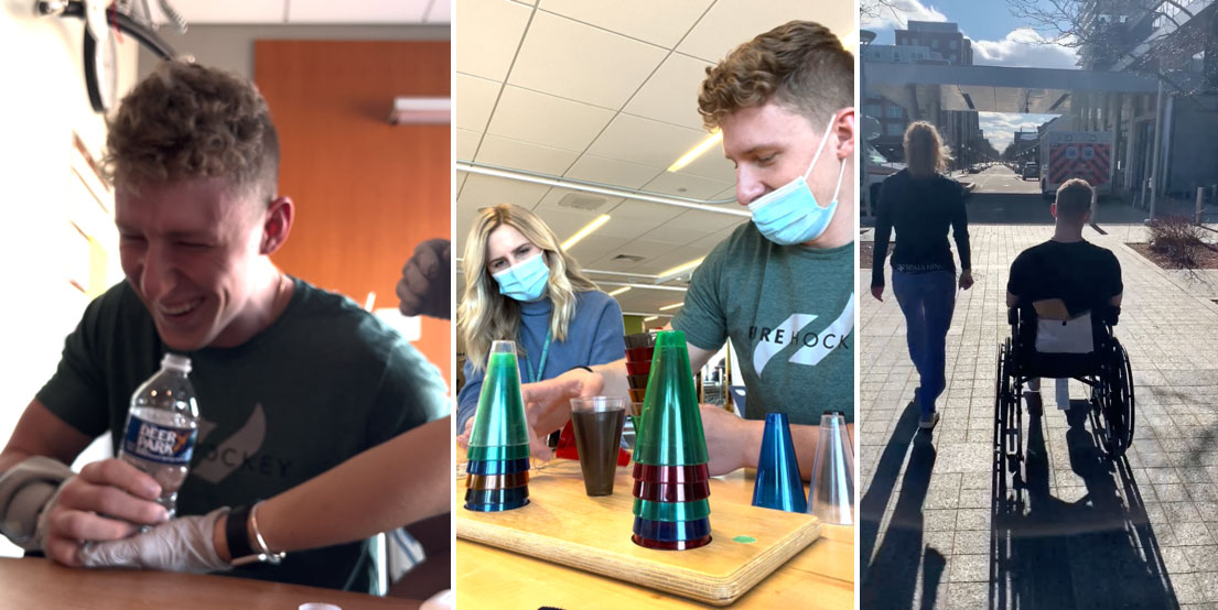 “My team at Spaulding adapted and were incredible. I’d imagine they don’t have many 22-year-olds, and they added in therapy sessions because I wanted them,” stated Smiley. With intensive inpatient therapy, Jack achieved an early goal to get back on the ice just three weeks later with the aid of his therapists. It was a pivotal moment in his rehabilitation.